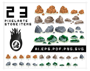 Pack of 8-bit Pixelated Rocks, vectorized in Illustrator in Pixelated format.