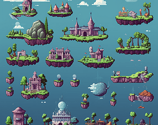 Twilight Aether Isles – Pixelart / Pixel Art Floating Island Fantasy RPG Animated Background Pack