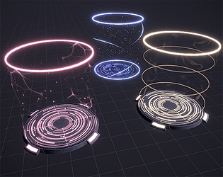 A pack of 4 customizable Sci-Fi teleport effects created with Shader Graph and Particle System.