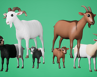 Cute Variations of Goats (8 colors and 10 horns) & Kids (8 colors and 1 horn) including 37 Animations each