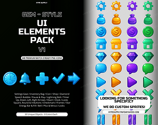 240 Premium UI Assets (30 Objects * 8 Gem Colors) Glossy, Polished. Plug-and-Play UI for Mobile & Casual Games