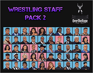 50 HD staff member graphics for games, projects—includes with/without backgrounds, perfect for wrestling sims.