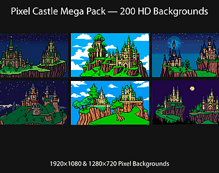 A collection of vibrant retro pixel skies — perfect for platformers, adventure games, or visual novels.
