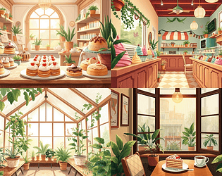 100 Cute Visual Novel Backgrounds Pack: Cafe, Bakery, School, Park, Restaurant, Town, Garden, Beach, School, Shop