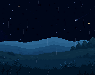 Pixel Parralax Background (with 10 frame Rain Animation) -Purple Sky, Lake, Mountains and moon
