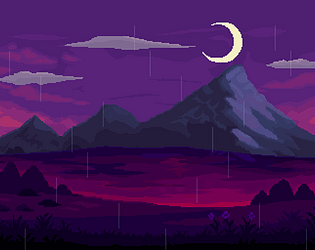 Pixel Parralax Background (with 10 frame Rain Animation) -Purple Sky, Lake, Mountains and moon