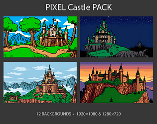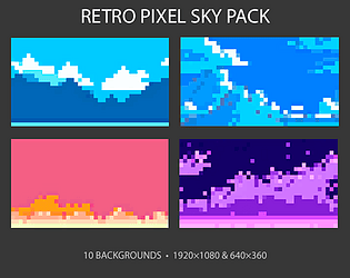 A collection of vibrant retro pixel skies — perfect for platformers, adventure games, or visual novels.
