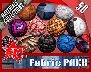 50 seamless fabric textures - denim, silk, leather, and ornamental patterns - ideal for clothing, props, and decoration.