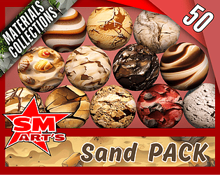 50 sand textures - dunes, cracked earth, rocky sand, and erosion patterns - perfect for arid and survival worlds.