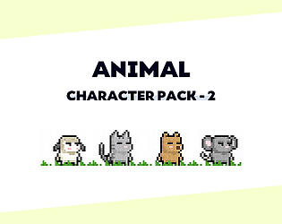 Four adorable animals-Sheep, Cat, Bear, Mouse pixel character pack with animations