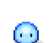 This sprite sheet contains the animations for four separate color 16×16 pixel art slimes.
