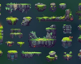 2D background sprites: Ready for use in platform games, landing pages, etc., or for inspiration style. AR: 1:4 to 1:8