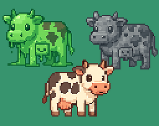 A free pack of elemental cows for video games, includes a normal cow, a stone cow, and a slime cow.