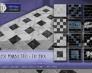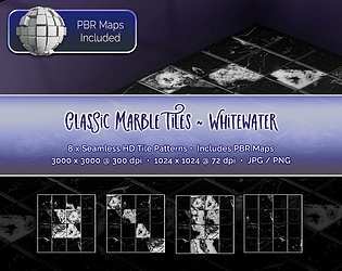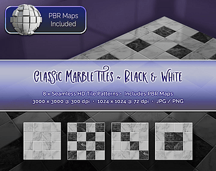 High-quality black-and-white marble tiles built for photoreal surfaces in any PBR workflow