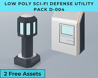 12 low-poly sci-fi defense devices: sensors, turrets, drones and security props for tower defense and RTS games.