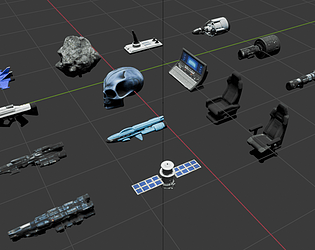 A set of 16 essential 3D assets for space shooters (like Asteroids), with low-resolution models