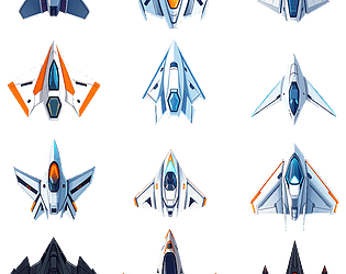 54 Spaceship, 4 asteroids and more for a shooter game or whatever.