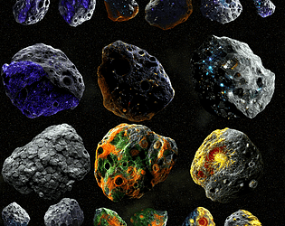 167 asteroids in 6 distinct styles. Each category containing multiple small and large high detail Asteroids.