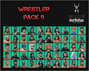 50 HD wrestler graphics for games, projects—includes with/without backgrounds, perfect for wrestling sims and designs.