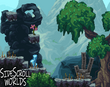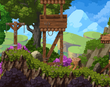 a tilemap with two different colors of grass and dungeons, and a background with a parallax effect as a bonus