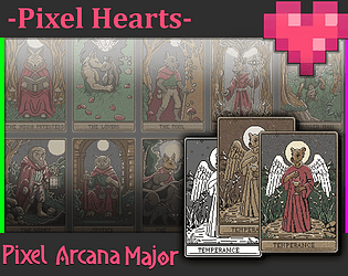 Classic tarot major arcana cards in pixel art - mocochrome version