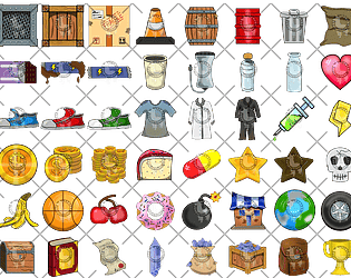 A selection of game assets, which can be used a inventory or skill items as well as a user interface.