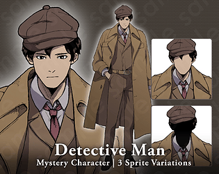 Brown-haired male detective sprite with 3 versions. Perfect for mystery, horror, or adventure-themed games.
