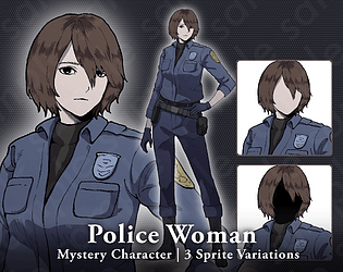 Brown-haired female officer sprite for mystery, crime, or horror games. Includes 3 visual variations in PNG.