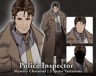 Brown-haired senior inspector character sprite. Ideal for mystery, crime, and horror games. PNG x3 included.
