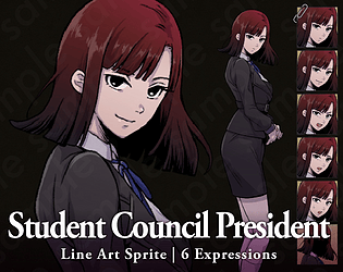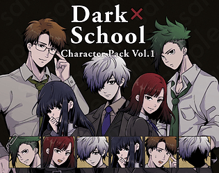 A dark, stylish character sprite set with 5 students and a teacher. Perfect for mystery and TRPG games.