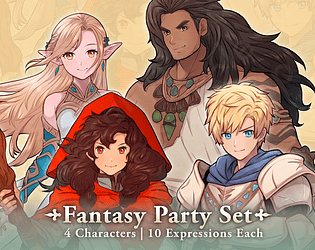 A fantasy sprite set with 4 characters: mage, knight, elf princess, and beastmaster. Includes 44 PNGs.