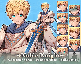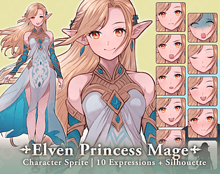 A blonde mage princess with pointed ears. Perfect for fantasy games, TRPGs, or visual novels. 11 PNGs.
