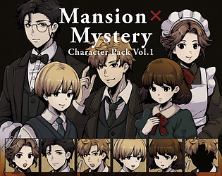 A full set of 5 line-art characters fit for gothic mansion mysteries and suspenseful scenarios.