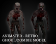 A PSX-style low-poly character model, fully rigged and textured, divided into head, body, and arms.