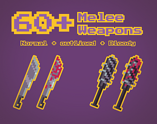 60+ HighQuality pixelart Melee Weapons