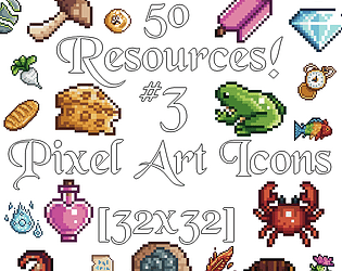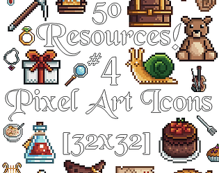 Tons of hand-drawn pixel art food and crafting items in multiple sizes!