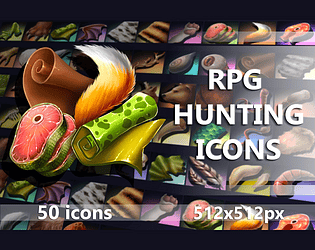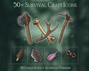 A set of 63 semi-realistic, hand painted icons focusing on survival craft and wilderness survival games.