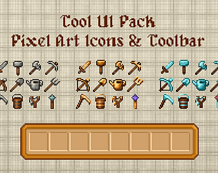 🔧 Pixel tool icons & UI bar for cozy crafting/farming games – 35 tools in 3 upgrade tiers.