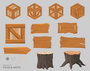 The Pack includes 12 Wooden Objects for your Games! Boxes, Boards and more.