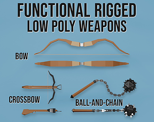 Fully functional, game ready, animated and rigged bow, crossbow, & ball and chain
