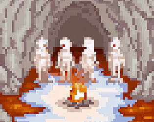 A pixel-art scene with a Skull Cave in a Desert Mountain and several animations