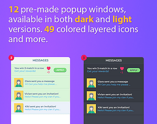 288 vibrant cartoon icons for all game genres: RPG, strategy, clickers, puzzles.
