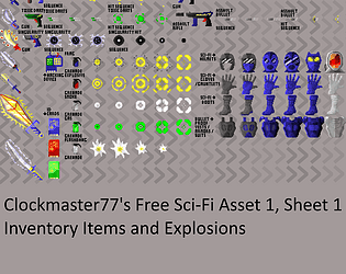 Sci-Fi Asset, Inventory Items and Explosions, for Roguelike and other Sci-Fi Games