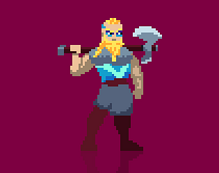 Detailed animated pixel art viking warrior