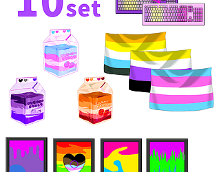 Colorful Pride-themed digital decor items for streams and games.