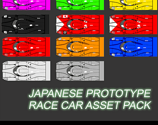 Japanese racing car 2d figure set in png format. Ideal for 2d car game projects