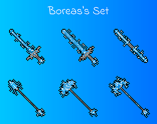 A frozen myth-inspired pixel weapon set forged under the North Wind. Hand-drawn, game-ready sprites.