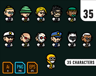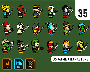 35 high-quality characters. This asset is perfect for a side scrolling game, or even a turn based RPG type game.