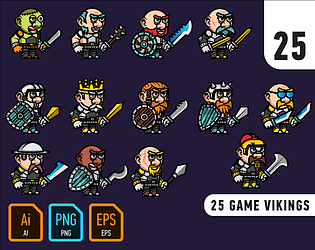 25 high-quality characters. This asset is perfect for a side scrolling game, or even a turn based RPG type game.