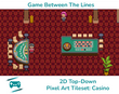 Pixel art assets for a slot machine, including a crank and 4 win symbols.